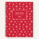 Winter themed notebook that features a modern white snowflakes vector pattern on a red background. Personalize this festive and winter themed design with the name or text of your choice.