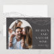 Send holiday greetings in chic style with these elegant and modern photo collage cards featuring a single vertical photo in an arch layout, adorned with line-drawn embellishments at the top and bottom. "Heaven and Nature Sing" appears alongside in modern lettering, with your family name and the year tucked into the lower right corner. A minimalist style in on-trend colors for your Christmas 2021 greetings.