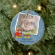 Fun and cute personalized photo Christmas ornamnent. Winter Toy Train Design for Baby or Kids. Could be a great Baby's First Christmas Ornament. Add your own digital photo and headline. Features white, snowy frame with light blue and white snowflakes background along with an adorable colorful toy train in red, yellow, orange and green! A perfect memento keepsake for any special holiday year.