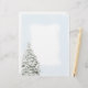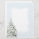 Holiday letterhead with snowy evergreen tree and blue border.