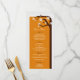 Seasonal orange dinner menus with a snowflake adorned tree design.