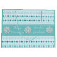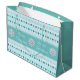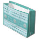 Winter pattern with rows of pine trees and snowflakes on light blue and teal large Christmas gift bag which you can personalize with your own text. Same image and text repeated on the reverse.
