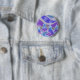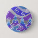 A modern, stylised winter landscape with frosted pine trees and sparkling snowflakes. Button with a blue, purple, silver, grey and white customizable design for you to personalise with your own text, images and ideas. A digitally enhanced coloured pencil drawing by Jess Perry.