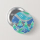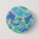 A modern, stylised winter landscape with frosted pine trees and sparkling snowflakes. Button with a blue, green, silver, grey and white customizable design for you to personalise with your own text, images and ideas. A digitally enhanced coloured pencil drawing by Jess Perry.