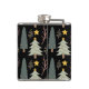 Winter will be cozy with this modern patterned flask. It has assorted winter trees in green on a black background, with branches and yellow stars scattered throughout. A great option for celebrating winter, Christmas, or the solstice. /cao/c