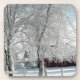 Enjoy the winter sun shining on snow covered trees in the horse corral on a small farm in North Idaho.