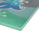 A modern, stylised winter landscape with frosted pine trees and sparkling snowflakes. Cutting board with a green, blue, silver grey and white customizable design for you to personalise with your own text, images and ideas. Image created using a digitally enhanced coloured pencil drawing.