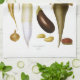 A beautiful vintage illustration of gourds, root vegetables and eggplant. Very crisp and clean on a lovely quality kitchen towel. Makes a perfect housewarming gift. Buy a set today for your favorite chef! A very lovely vintage design. Bon Appetit!
