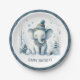 Birthday paper plates featuring a watercolor Elephant. Winter vibes, snowflakes. Customizable.