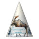 Cute birthday party hats featuring an moose in the cold of the winter. For winter-born kids.