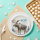 Cute birthday party paper plate featuring a moose celebrating winter. For winter-born kids. Customize this product by adding your party information.