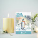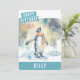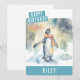 A cute watercolor birthday card featuring a penguin celebrating winter on the front with "Happy Birthday" in a white, all-caps bold font. Personalize the front by adding your name(s). The back of the card features space for your typed or handwritten message.