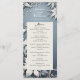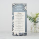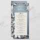 Romantic winter wedding menu, featuring crisp winter foliage and flowers on an icy blue gradient background..