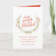 Christmas floral wreath watercolor art with the elements of red berries, mistletoes, pine cones, red flowers and branches. Red, green and yellow star, festive floral drawing and light wash watercolor art Christmas winter wedding program. Personalize this winter wedding program with your own names, date, wedding details and thank you. © Original watercolor painting and design by Sarah Trett for www.mylittleedenweddings.com