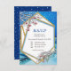 A Blue winter fantasy scene with a Geometric gold frame is easy to customize with your wording, font, font color, paper shape and choice of twelve paper types.