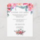 Pink roses and peonies flower bouquet winter themed wedding guest details cards designed to be easily and quickly customized to your event specifics.