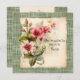 A beautiful white Hibiscus and red Lily on a scroll background, which is on a green linen background.