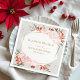 Set your winter wedding apart with these elegant napkins. The watercolor floral design, intricate calligraphy, and warm hues of pink roses, poinsettias, red berries, and evergreen leaves will add a touch of sophistication and romance to your special day. Don't miss your chance to leave a lasting impression on your guests!
