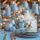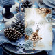 Winter Wedding table number card with beautiful brown, white and blue pinecones, pine branches and gold accents. Personalize text and font to your liking. #generativecontent