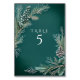 Winter Wedding table number card with beautiful snowy pinecones, pine branches and green pineberries. Great for your Holiday, Christmas celebration. #generativecontent