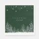 Winter Wedding Pine Trees Snowflakes paper napkins have a beautiful dark green background with snow covered Pine Trees, white Winter trees, snowflakes and pretty hanging sparkle effect. Personalize with your information, customize for use as Winter Wonderland Sweet 16 invitation or Christmas card.