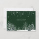 Pretty wedding response card with beautiful dark green background, it has delicate snowflakes, White Winter Trees, Pine Trees and hanging white lights.