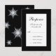 Intricately, illustrated falling snowflakes decorate the back of this RSVP, that coordinates perfectly with the Winter Wedding Invitation. It is shown on the basic paper; however, for added glamour I suggest the shimmer of the metallic ice paper.