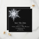 An intricately illustrated snowflake adorns this Save the Date, leaving all awaiting your wedding with eager anticipation. It is shown on the basic paper; however, I suggest the metallic ice paper for added glam.