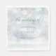 Featuring delicate snowflakes falling across your personalised names and special wedding date on a winter frost background. Designed by Thisisnotme©