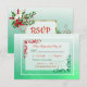 Winter Wedding Christmas themed green and red candy cane, holly and pine Wedding RSVP card