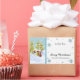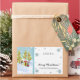COLOR PALETTE: Modern Christmas Trend of Light Blue and White with lime yellow, gold, green and red. DESIGN COLLECTION: With the text, "A Gift For: and Merry Christmas, from your family name", this is a whimsical, fun, Christmas and Winter themed gift package topper sticker, seal or decoration set that has been made of hand panted watercolor artwork from Audrey Jeanne Roberts. The Christmas trees are decorated with a draped red garland, swirling star tree toppers in piles of snow with hand made star snowflakes falling in the background and baby polar bears playing with each other with bows around their necks. This design is available on a wide range of products.