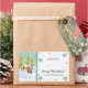 COLOR PALETTE: Modern Christmas Trend of Aqua Blue and White with lime yellow, gold, green and red. DESIGN COLLECTION: With the text, "A Gift For: and Merry Christmas, from your family name", this is a whimsical, fun, Christmas and Winter themed gift package topper sticker, seal or decoration set that has been made of hand panted watercolor artwork from Audrey Jeanne Roberts. The Christmas trees are decorated with a draped red garland, swirling star tree toppers in piles of snow with hand made star snowflakes falling in the background and baby polar bears playing with each other with bows around their necks. This design is available on a wide range of products.