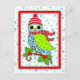 Wearing a red and white striped scarf and hat, this colorful Winter owl is all dressed for a holiday celebration. Background is blue snowflakes on white with a red border.