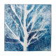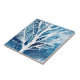 Winter theme blue and white watercolor painting of a white birch tree with snow background. Arty original artwork with a Christmas theme. Blue and white Christmas.