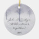 Lightweight, smooth, pure white ornament with nice sheen. Perfect size to be seen from across the room ... and to attract closer inspection! Price was great for ordering enough for the whole family! Clear, bold black design just as requested. Matches the order exactly. Just so nice!