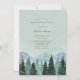 This design features greenery woodland emerald green Christmas trees and snow with dusty blue and light green watercolor hills. Great for your wedding celebration during Christmas time!