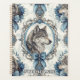 This stylized planner features a striking wolf’s head centered within an intricate oval frame adorned with bows, snowflakes, and roses. Rendered in elegant shades of blue and grey against a light, subtly patterned background, the design evokes a wintry, fairytale ambiance. Blending strength and grace, it’s perfect for fantasy lovers, winter themes, and mystical animal art enthusiasts.