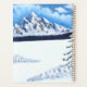 A planner with a beautiful winter scene, including snow covered mountains, evergreens, and rustic cabin. The image and text can be personalized. Original artwork by W.B.