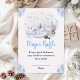 This cute and whimsical watercolor diaper raffle enclosure card features a watercolor winter wonderland scene with adorable arctic animals, such as a polar bear, penguin, cat, whale, seal and a moose. In the background are snow capped mountains, ice caps and trees. The text combines handwritten script and sans serif fonts for a stylish and modern look. Falling snowflakes and beautiful blue floral arrangements give a winter feel. This is perfect for winter and Christmas baby showers.