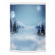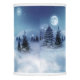 Beautiful snowy winter wonderland at night, with moon and stars.