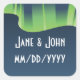 A stylized, Art-Deco inspired aurora streaks across the top of this midnight blue sticker accenting text that can be customized for your special event. Set a mood of class and whimsy to your winter-themed event by adding these stickers to gift bags for your wedding guests or use them as save-the-date stickers to include with your invitations. Be sure to check out the other products in the Winter Wonderland Auroras set to create a truly coordinated look for your event.
