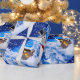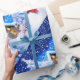 Winter wonderland Christmas wrapping paper. Cute winking snowman in a magical snowy winter setting.