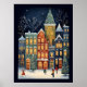 Explore the captivating charm of a city blanketed in a pristine layer of snow during the festive season of Christmas and New Year. Our joy-infused design brings to life a picturesque scene, showcasing buildings adorned with a whimsical coating of snow. As you gaze at the illustrated windows, discover a warm glow symbolizing the cozy celebrations inside.