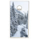 Pine Trees covered in snow with a creek running through them