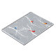 Lovely winter scene with white branches, colorful birds and a falling snow.