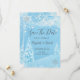 Winter wonderland, string lights and snowflakes save the date. Beautifully save the date that can be customized with your name. Select the "customize" button to change the font style, color, and size.