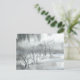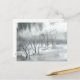 Trees reach into a misty, cloudy winter sky. Snow piles and swirls. Winter is beautiful. Original Chinese brush painting by Ren Adams reproduced here on a lightly textured, glossy finish postcard.