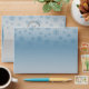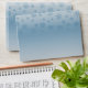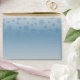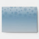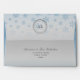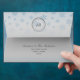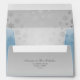 Simple, elegant, modern winter wonderland silver and ice-blue 5x7 envelope with return address, snowflakes inside and monogram initials at the top flap.