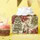 The color palette of the wrapping paper predominantly consists of rich reds, deep greens, and crisp whites. The red of Santa's suit and hat pops against the snowy backdrop, while the green of the trees adds a traditional and comforting touch to the design. The white of the snow ties the elements together, creating a harmonious and wintry ambiance.