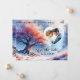 Winter wonderland Save the Date card featuring a painting of a tree with fine snow flakes softly descending. Your photo shows in a lovely heart frame. On the back is a QR code template.